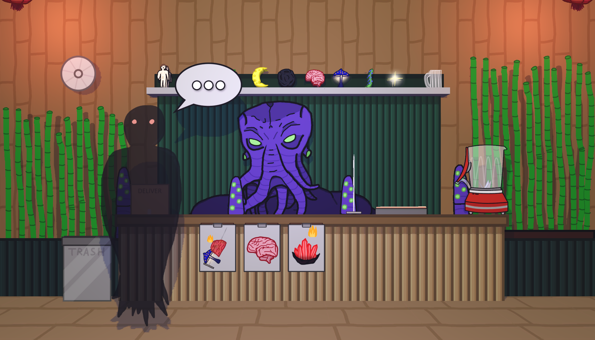 The blender lid was my attempt of incorporating "eldritch horror" :) It 100% needs improvements. Visual clarity for the oven would also be nice